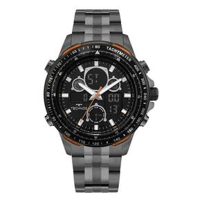Gênero: Masculino Banho: Grafite Tipo: Ana Digi Cor da Caixa: Grafite Material da Pulseira: Aço Formato: Redondo Tipo de Fecho: Trava de Segurança : 12 meses Cor da Pulseira: Grafite Largura da Caixa cm : 4,9 Resistência à Água: 10 ATM Relógio Technos Digitech traz um novo lançamento design robusto, com embalagem especial. O relógio conta com maquinismo anadigi, cronógrafo e detalhes de cor no aro externo, além de marcadores de hora em indexes. Produto 100% em aço inoxidável, com pulseira de aço em 3 links, e resistência à água de 100 metros.