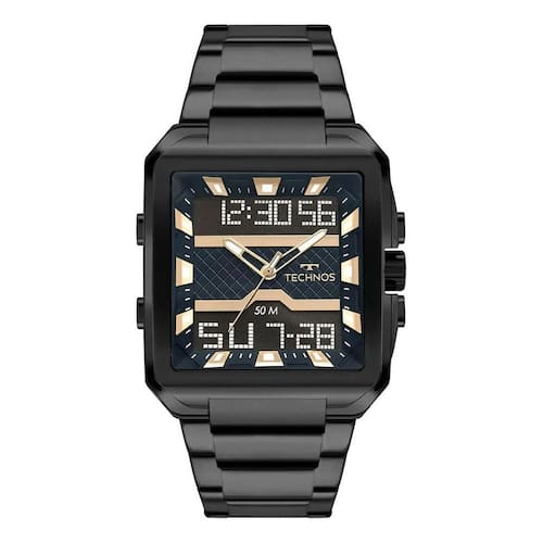 Relógio technos masculino digitech preto - bj3758ac/1a Cor: preto Relógio technos bj3758ac/1a Relógio digitech, possui caixa robusta na cor preto, lente abaulada, e detalhes metálicos no mostrador azul. Produto 100% em aço inoxidável, banhado em preto, com máquina anadigi e resistência à água de 50 metros. Relógio perfeito para quem gosta de ousar. Informações básicas - marca: technos - referência: bj3758ac/1a - : 1 ano diretamente com o fabricante Funções: - horario analogico - horario digital 12/24hrs - iluminação para visualização em ambientes escuros - marcadores e ponteiros fosforescentes facilitando a visualização - cronometro - alarme - timer - calendário Características - composição do vidro: cristal mineral - material da caixa: aço - cor da caixa: preto - material da pulseira: aço - cor da pulseira: preto - bateria Medidas: Diametro da caixa: 42.5 mm Largura da pulseira: 31 mm Resistência à água 5 atm - wr: 50 mts - pode lavar as mãos: sim - pode usar em água corrente: sim - pode usar na piscina: sim - pode usar em mergulho profundo: não Acompanha: - manual de instruções - embalagem - certificado de Ainda esta com dúvida Marca: Não Informado Ean: 7891530853807