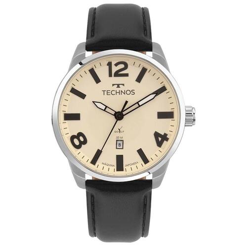 Relógio Technos Masculino Golf Prata 2115ubd/0x Relógio Technos Golf apresenta um modelo. O relógio apresenta mostrador de fácil leitura na cor champanhe, com assi de linha e lente abaulada, além de calendário na posição de 6 horas. Ele também apresenta pulseira de couro na cor preta. Produto em aço inoxidável, banhado em prata, com resistência à água de 50 metros. Banho Prata Tipo Analógico Cor da Caixa Prata Material da Pulseira Couro Material da Caixa Aço Formato Redondo Cor do Mostrador Champagne Tipo de Fecho Fivela Garantia 12 meses Cor da Pulseira Preto Largura da Caixa (cm) 4,4 Resistência à Água 5 ATM Cor Prata Tamanho Grande Gênero Masculino