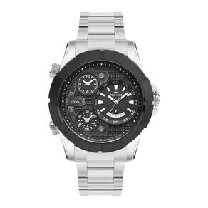 A linha Legacy apresenta uma coleção robusta inédita, com a inovação da presença de três maquinismos analógicos em um só relógio, o que permite a configuração e visualização de três fusos-horários diferentes. Seu aro externo é trabalhado com relevos, e o modelo conta com aplicação de textura e detalhes metálicos no mostrador, além da pulseira 3 links com acabamento polido no elo central. Produto 100% em aço inoxidável, com máquina quartz japonesa Miyota, calendário, cronógrafo e resistência à água de 100 metros. Versões com pulseira em aço 3 links ou pulseira de silicone
