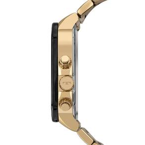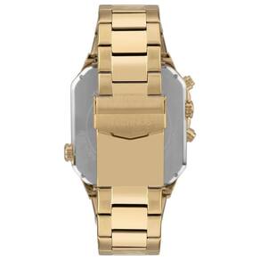 Os detalhes em rosé gold nos ponteiros e marcadores conferem sofisticação ao design robusto. A pulseira em aço dourado, com fecho dobrável e trava de segurança, garante resistência e conforto. Com resistência à água de 100 metros, o relógio é ideal tanto para o uso diário quanto para momentos de lazer ou ocasiões especiais.