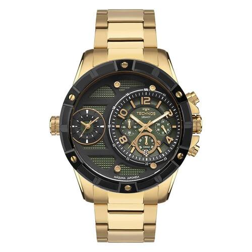 Relógio Technos Masculino Legacy Dourado - Os2a2maqaa/1p Os2a2maqaa/1p A nova coleção da linha Legacy apresenta uma caixa robusta, aro externo trabalhado com relevos e duas máquinas japonesas, permitindo a configuração de dois fusos horários diferentes. Seu mostrador conta com a presença do cronógrafo, além da aplicação de textura e detalhes metálicos. Produto 100% em aço inoxidável, com máquina quartz japonesa Miyota, cronógrafo, calendário e resistência à água de 100 metros. Banho - Dourado Tipo - Cronógrafo Cor da Caixa - Dourado Material da Pulseira - Aço Formato - Redondo Cor do Mostrador - Verde Garantia - 12 Meses Cor da Pulseira - Dourado Largura da Caixa (cm) - 5,4 Resistência à Água - 10 ATM plaintext_description_meli - Relógio Technos Masculino Legacy Dourado - OS2A2MAQAA/1PA nova coleção da linha Legacy apresenta uma caixa robusta, aro externo trabalhado com relevos e duas máquinas japonesas, permitindo a configuração de dois fusos horários diferentes. Seu mostrador conta com a presença do cronógrafo, além da aplicação de textura e detalhes metálicos. Produto 100% em aço inoxidável, com máquina quartz japonesa Miyota, cronógrafo, calendário e resistência à água de 100 metros. meli_title - Relógio Technos Masculino Legacy Dourado - OS2A2MAQAA/1P Modelo_ML - Relógio Technos Masculino Legacy Dourado - OS2A2MAQAA/1P Cor - Dourado Tamanho - Grande Gênero - Masculino