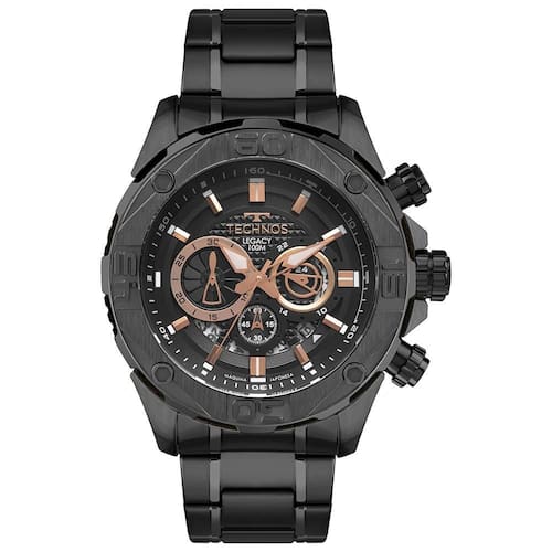Relógio Technos Legacy com aro externo trabalhado em relevos e detalhes de parafuso. Sua caixa robusta conta com a aplicação de silicone em relevos nas laterais. Seu mostrador apresenta duas camadas, efeito de profundidade, aplicação de textura e assinatura de linha. Produto 100% em aço inoxidável, com máquina quartz japonesa Miyota, cronógrafo, calendário e resistência à água de 100 metros