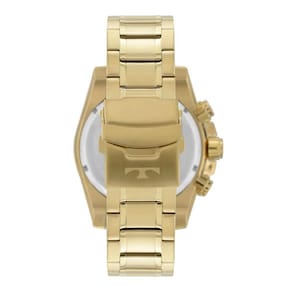 Relógio Technos Legacy com caixa robusta e aro externo giratório trabalhado com relevos. Seu mostrador é rico em detalhes, com efeito de profundidade e assinatura de linha. É um modelo troca-pulseira, com pulseira extra de silicone na cor preta. Produto 100% em aço inoxidável em banho dourado, com máquina quartz Japonesa Miyota, calendário, cronógrafo e resistência à água de 100m. Tamanho de caixa 51,5mm.
