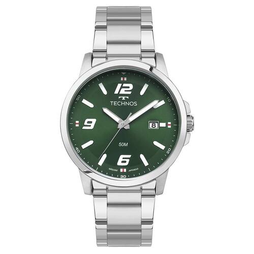 Relógio Technos Racer com design esportivo atemporal. Seu mostrador de fácil leitura conta com números grandes nas posições de 6/9/12 horas e aro interno com marcações dos minutos. Produto 100% em aço inoxidável, com máquina quartz japonesa Miyota, calendário e resistência à água de 50 metros.