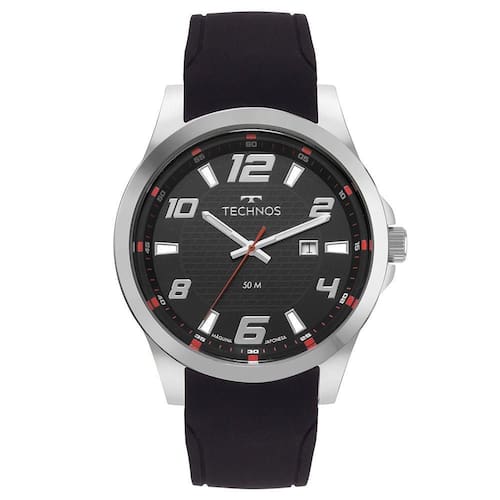 Relógio Technos Racer apresenta seu novo lançamento de design esportivo, que conta com mostrador de fácil leitura na cor preto com numeração arábica, detalhes em cores de destaque e analógico com data na posição de 3 horas. Produto 100% em aço inoxidável, banhado em prata, com resistência à água de 50 metros e pulseira de silicone na cor preto.