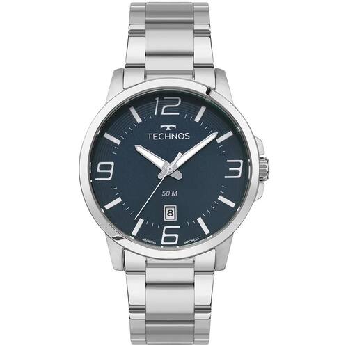 O mostrador azul possui acabamento sofisticado e traz numerais grandes e marcadores bem definidos, garantindo excelente leitura das horas. O modelo conta ainda com calendário na posição das 6 horas, agregando praticidade ao uso cotidiano.