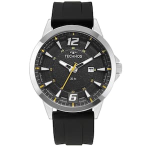 Relógio Technos Masculino Racer Prata - 2117ldp/2p 2117ldp/2p Relógio Technos Racer masculino com caixa de aço inox e pulseira de silicone na cor preta. Com modelagem esportiva, inspirada no universo automobilístico, o modelo Racer da Technos apresenta toques de amarelo em seu mostrador. Possui máquina quartz japonesa, calendário, resistência à água de 5 ATM e tamanho de caixa 46mm. Produto autêntico da Marca Technos. Banho - Prata Tipo - Analógico Cor da Caixa - Prata Material da Pulseira - Silicone Formato - Redondo Cor do Mostrador - Preto Tipo de Fecho - Fivela Garantia - 12 meses Cor da Pulseira - Preto Largura da Caixa (cm) - 4,6 Resistência à Água - 5 ATM meli_title - Relógio Masculino Technos Soul Preto Loja De Fábrica Modelo_ML - 2117LDP/2P Relógio Technos Masculino Racer autêntico Preto com Pulseira de Silicone Tela Analógica e Caixa com 46 mm na cor Prateado Fundo Rosqueado à Prova D'água até 50 Metros Presente para Dia dos Pais Mães Namorados Natal Cor - Prata Tamanho - Grande Gênero - Masculino