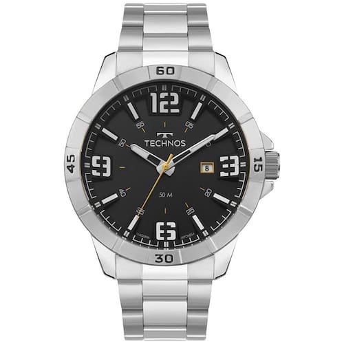 Relógio Technos Racer apresenta seu mais novo lançamento, de design esportivo e analógico com data na posição de 3 horas. Ele conta com aro trabalhado em relevos com marcação e mostrador de fácil leitura na cor preto com numeração arábica, trabalhado em diferentes níveis, trazendo o diferencial. Produto 100% em aço inoxidável, banhado em prata, com resistência à água de 50 metros e pulseira de aço inoxidável em 3 links.