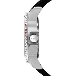 características - composição do vidro: cristal mineral - material da caixa: aço - cor da caixa: prata - material da pulseira: silicone - cor da pulseira: preto - bateria