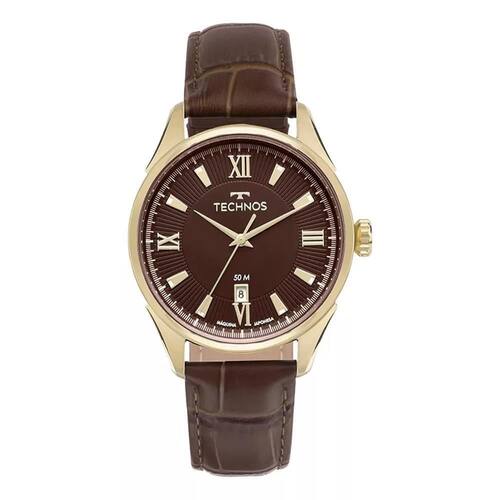 Relógio Technos Masculino Ref: 2115tye/0m Classic Dourado Descrição do Produto: Caixa de Aço Pulseira de Couro Marrom Fundo de Rosca Resistente à Água 5 Atm Diâmetro / Largura da Caixa: 40.00 MM Funções: ógico, Calendário Alimentação do Maquinário: Bateria Mostrador Marrom com Algarismos Romanos Maquinário Japonês de 1 Ano Marca: Não Informado Ean: 7891530853760