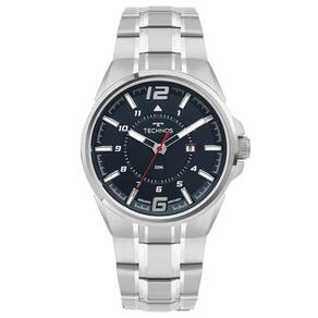 Relógio Technos Masculino Ref: 2115tzt/1a Skymaster Prateado Descrição do Produto: Caixa de Aço Pulseira de Aço Fundo Rosqueado Resistente à Água 5 Atm Diâmetro / Largura da Caixa: 45.00 MM Funções: Analógico, Calendário Alimentação do Maquinário: Bateria Mostrador Azul com Números Maquinário Japonês de 1 Ano Marca: Não Informado