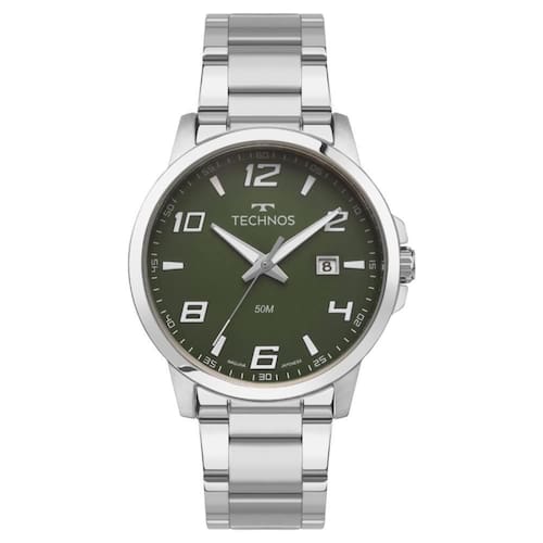 Relógio Technos Masculino Ref: 2315lat/1v Racer Prateado Descrição do Produto: Caixa de Aço Pulseira de Aço Fundo de Pressão Resistente à Água 5 Atm Diâmetro / Largura da Caixa: 43.00 MM Funções: Analógico, Calendário Alimentação do Maquinário: Bateria Mostrador verde com Números Maquinário Japonês