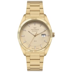 Relógio Technos Masculino Ref: 2317ag/1x Clássico Riviera Dourado Descrição do Produto: Caixa de Aço Pulseira de Aço Fundo de Rosca Resistente à Água 5 Atm Diâmetro / Largura da Caixa: 42.00 MM Funções: Analógico, Calendário com Lupa, Alimentação do Maquinário: Bateria Mostrador Dourado Máquina Japonesa Aro Fixo Dourado Corrugado de 1 Ano Marca: Não Informado Ean: 7891530865572