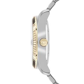 Relógio Technos Masculino Ref: 2350am/1a Clássico Riviera Bicolor Descrição do Produto: Caixa de Aço Pulseira de Aço Fundo de Rosca Resistente à Água 5 Atm Diâmetro / Largura da Caixa: 43.00 MM Funções: Analógico, Calendário com Lupa Alimentação do Maquinário: Bateria Mostrador Azul com pedra Máquina Japonesa Prateado com Dourado