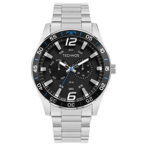 Relógio Technos Masculino Ref: 6p25bw/1p Multifunção Prateado Descrição do Produto:Caixa de Aço Pulseira de Aço Fundo Rosqueado Resistente à Água 5 Atm Diâmetro / Largura da Caixa: 46.00 MM Funções: Analógico, Multifunção Alimentação do maquinário: Bateria Mostrador Preto com Números Garantia de 1 Ano