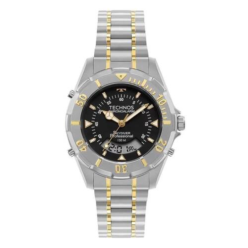 O Relógio Technos Masculino Skydiver Bicolor WT2050AG/1P possui um mostrador preto com iluminação noturna nos índices, facilitando a visualização das horas mesmo em ambientes com pouca luz. Além disso, ele possui um calendário digital, alarme e cronômetro, proporcionando praticidade e funcionalidade no dia a dia.
