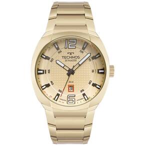 Linha: SkymasterGarantia: 12 meses em toda rede autorizada TECHNOSConteúdo da embalagem: 1 relógio, manual, certificado de garantiaFornecedor: Technos Indústria e Comércio da Amazônia S/A Características: Vidro: Cristal MineralMaterial da caixa: AçoCor da caixa: DouradoMaterial da pulseira: AçoCor da pulseira: DouradoDiâmetro da caixa: 4,4 cmCor do mostrador: DouradoMecanismo: Quartz / Máquina JaponesaFunções: Analógico / CalendárioResistência à água : 5 atmRelógio Technos Skymaster com construção de caixa robusta. O modelo fica ainda mais imponente com o vidro facetado que acompanha sua curvatura e a pulseira integrada. Seu mostrador apresenta aplicação de textura no centro, assinatura de linha e ponteiro dos segundos em vermelho. Produto 100% em aço inoxidável em banho dourado, com máquina quartz japonesa Miyota, calendário e resistência à água de 50m. Tamanho de caixa 44mm.