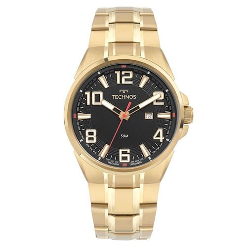 Relógio Technos Masculino Skymaster Dourado - 2115twx/1p 2115twx/1p O novo modelo da linha Skymaster possui uma construção de caixa robusta, que fica ainda mais imponente com a pulseira integrada e o protetor de coroa. Seu mostrador de fácil leitura apresenta números grades nos marcadores de horas pares, toques de cor e aplicação de textura pelo aro interno. Produto 100% em aço inoxidável, com máquina quartz japonesa Miyota, calendário e resistência à água de 50 metros. Banho - Dourado Tipo - Analógico Cor da Caixa - Dourado Material da Pulseira - Aço Formato - Redondo Cor do Mostrador - Preto Tipo de Fecho - Trava Lateral Garantia - 12 Meses Cor da Pulseira - Dourado Largura da Caixa (cm) - 4,5 Resistência à Água - 5 ATM plaintext_description_meli - Relógio Technos Masculino Skymaster Dourado - 2115TWX/1PO novo modelo da linha Skymaster possui uma construção de caixa robusta, que fica ainda mais imponente com a pulseira integrada e o protetor de coroa. Seu mostrador de fácil leitura apresenta números grades nos marcadores de horas pares, toques de cor e aplicação de textura pelo aro interno. Produto 100% em aço inoxidável, com máquina quartz japonesa Miyota, calendário e resistência à água de 50 metros. meli_title - Relógio Technos Masculino Skymaster Dourado - 2115TWX/1P Modelo_ML - Relógio Technos Masculino Skymaster Dourado - 2115TWX/1P Cor - Dourado Tamanho - Grande Gênero - Masculino