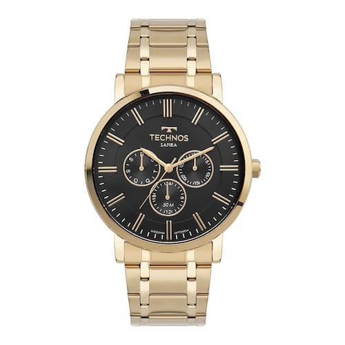 Relógio Technos Masculino Slim Dourado - 6p29ame/1p 6p29ame/1p Com caixa ultrafina, a linha Slim reinventa o conceito clássico da simplicidade para apresentar seu novo modelo, moderno e sofisticado, com pulseira de aço inoxidável em 5 links. Seu diferencial está na lente de safira, altamente resistente a riscos e arranhões. Produto 100% em aço inoxidável, com máquina quartz Japonesa Miyota multifunção e resistência à água de 50 metros. Banho - Dourado Tipo - Multifunção Cor da Caixa - Dourado Material da Pulseira - Aço Formato - Redondo Cor do Mostrador - Preto Tipo de Fecho - Trava Lateral Garantia - 12 Meses Cor da Pulseira - Dourado Largura da Caixa (cm) - 4,2 Resistência à Água - 5 ATM plaintext_description_meli - Relógio Technos Masculino Slim Dourado - 6P29AME/1PCom caixa ultrafina, a linha Slim reinventa o conceito clássico da simplicidade para apresentar seu novo modelo, moderno e sofisticado, com pulseira de aço inoxidável em 5 links. Seu diferencial está na lente de safira, altamente resistente a riscos e arranhões. Produto 100% em aço inoxidável, com máquina quartz Japonesa Miyota multifunção e resistência à água de 50 metros. meli_title - Relógio Technos Masculino Slim Dourado - 6P29AME/1P Modelo_ML - Relógio Technos Masculino Slim Dourado - 6P29AME/1P Cor - Dourado Tamanho - Médio Gênero - Masculino