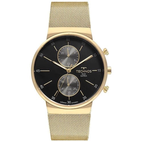 Relógio Technos Masculino Slim Dourado - Vd36aa/1p Vd36aa/1p Com design minimalista, o lançamento da linha Slim reinventa o conceito clássico da simplicidade para apresentar um acabamentos moderno e sofisticado, como a assinatura de linha no mostrador de cor preta. Com caixa fina, pulseira de mesh de aço e Vidro de Safira, é uma coleção que, além de ser leve e confortável em qualquer pulso, entrega um vidro com alta resistência a riscos e arranhões. Produto 100% em aço inoxidável em banho dourado, com cronógrafo, máquina quartz japonesa Miyota e resistência à água de 50m. Banho - Dourado Tipo - Multifunção Cor da Caixa - Dourado Material da Pulseira - Aço Formato - Redondo Cor do Mostrador - Preto Garantia - 12 meses Cor da Pulseira - Dourado Largura da Caixa (cm) - 4,0 Resistência à Água - 5 ATM meli_title - Relógio Technos Masculino Slim Dourado - VD36AA/1P Modelo_ML - Relógio Technos Masculino Slim Dourado - VD36AA/1P Cor - Dourado Tamanho - Médio Gênero - Masculino Ean: 7891530768743