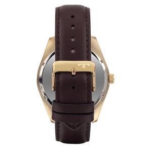 Vidro: Cristal MineralMaterial da caixa: AçoCor da caixa: DouradoCor da pulseira: MarromDiâmetro da caixa: 4,6 cmMecanismo: QuartzFunções: Analógico / CalendárioResistência à água5 atm / Consulte sempre o manual antes de molhar seu relógio