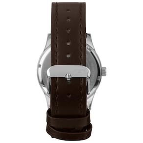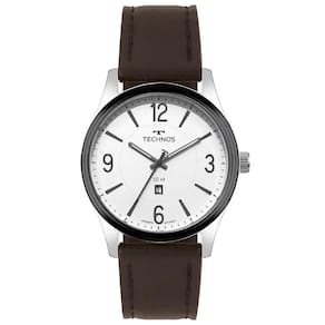 Para quem busca um visual casual com toque clássico, o Technos 2115TZY/0K é uma excelente escolha. Com caixa de 42mm em aço inox e acabamento prateado com aro preto, o modelo combina resistência com estilo atemporal. Seu mostrador branco com marcadores pretos e pulseira de couro marrom costurado conferem um visual versátil e sofisticado para o dia a dia.