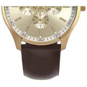 Banho: dourado Tipo: analogico Cor da caixa: dourado Material da caixa: aço inoxidavel Material da pulseira: aço inoxidavel Formato: redondo Cor do mostrador: dourado Cor da pulseira: marrom Tipo de fecho:fivela simples Largura da caixa: 4,4 cm Tamanho da pulseira: 23 cm Espessura da caixa: 1,3 cm Peso: 154g Garantia: 12 meses Resistencia a água: 5 atm Ean: 7891530802355