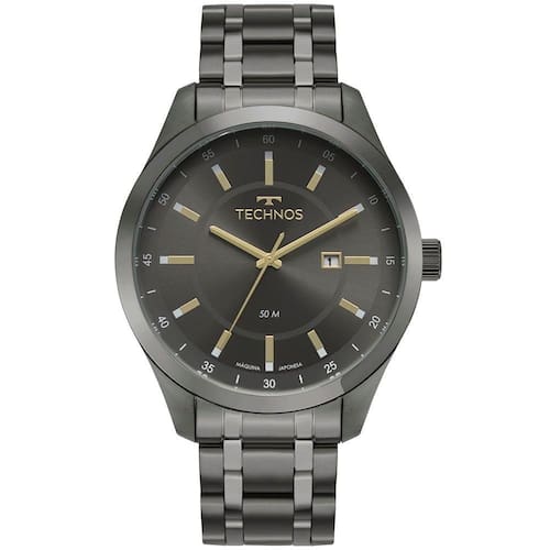 Elegância e versatilidade se encontram no Relógio Technos Steel. Com caixa robusta de 46mm, mostrador de fácil leitura com detalhes em dourado e aro interno com marcação de minutos/segundos, ele combina sofisticação e praticidade. Sua pulseira de aço 5 links em banho grafite garante um acabamento premium para qualquer ocasião. Conta ainda com calendário, resistência à água de até 50 metros e máquina quartz japonesa Miyota, que oferece precisão e durabilidade.