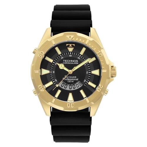 Descrição do Produto: Caixa de Aço Inox Pulseira de Silicone Vidro: Cristal Mineral Fundo Rosqueado Resistente à Água 15 Atm Diâmetro / Largura da Caixa: 48.00 MM Funções: Calendário, Cronógrafo, Alarme, Anadigi Linha: Technos Skydiver Mostrador Preto Alimentação do Maquinário: Bateria