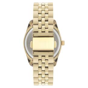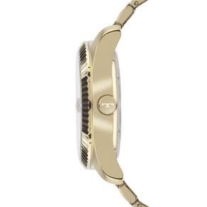 Relógio Technos Riviera feminino, com o sofisticado maquinismo multifunção. O modelo apresenta assinatura de linha no mostrador, aplicação de pedras nos marcadores de hora e o icônico acabamento corrugado no aro externo, elemento tradicional do universo relojoeiro. A pulseira diferenciada de 5 links complementa sua elegância. Produto 100% em aço inoxidável em banho dourado, com máquina quartz japonesa Miyota multifunção e resistência à água de 50m. Tamanho de caixa 38mm.