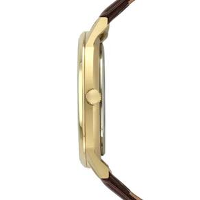 Mecanismo: Máquina Quartz Japonesa Miyota Gênero: Masculino Visor: Dourado Vidro: Cristal Mineral Prova d'água: 50m Características: Com caixa em aço inoxidável e pulseira em couro marrom Diâmetro da caixa: 42 mm Garantia: 1 ano pelo fabricante Technos