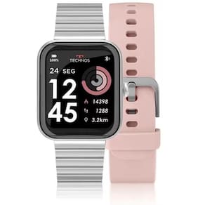 Relógio Technos Smart Unissex Connect Tmaxak/7K Relógio Technos Smart Unissex Connect Tmaxak/7K Smartwatch Technos Troca-Pulseira TMAXAK/7K Rosa E Prata Maximize sua vida e amplie suas possibilidades Com mais de 30 funcionalidades disponíveis, e resistência à água de 100 metros 10ATM , o Technos Connect MAX chegou para você dar o máximo na sua rotina. Ele possui um design premium, com duas pulseiras. Características: Marca: Technos Modelo: TMAXAK/7K Cor da caixa: Prata Material da caixa: Metal Quantidade de pulseiras: 2 01 Pulseira de Aço cor Prata 01 Pulseira de Poliuretano cor Rosa Monitoramento de Controle de música Previsão de tempo Alerta de sedentarismo Reconhecimento automático de atividade Oxigenação do sangue Resistência à água: 10 ATM Notificação de chamada e redes sociais Monitoramento de mais de 12 esportes Monitoramento cardíaco Código homologação Anatel: 07474-22-10771 Contém na caixa: 01 Smartwatch 01 Pulseira Rosa de silicone 01 Pulseira Prata aço 01 Carregador USB 01 Manual Peso 100 grs Acompanha: Manual Termo de de 12 meses Marca: Não Informado Ean: 7891530827655