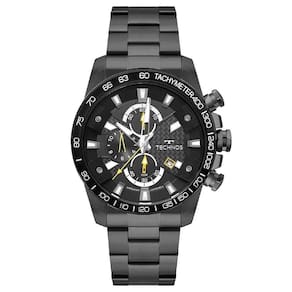 Mecanismo: Analógico (Quartz) Gênero: Masculino Visor: Preto Funções: Cronógrafo e Calendário Prova d'água: 100m Características: Caixa e pulseira em aço inoxidável Diâmetro da caixa: 46 mm Garantia: 1 ano pelo fabricante Technos