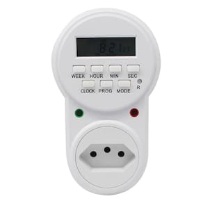 Tipo: Temporizador digital Display: LCD Indicadores: LEDs de funcionamento Programações: Até 18 programações Temporização: De 1 segundo até 1 semana Corrente de trabalho: 10 A Potência máxima: 2200 W Tensão de entrada: Bivolt automático 127V a 220V Frequência: 60 Hz Plugue: Padrão NBR14136 Bateria: Lítio recarregável Material: Retardador de chama Dimensões aproximadas: 11,5 x 5,8 x 7,1 cm