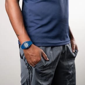 Sua caixa e pulseira em resina azul proporcionam conforto no pulso e excelente adaptação para uso prolongado. O mostrador digital amplo facilita a visualização das informações, enquanto a tradicional iluminação INDIGLO, exclusiva da Timex, garante leitura eficiente em ambientes com pouca luz.