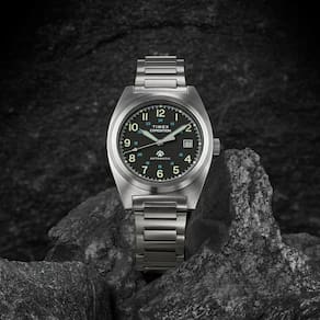Relógio Timex Expedition Capstone Automatic TW2Y39600 O Relógio Timex Expedition Capstone Automatic TW2Y39600 construído todo em aço inoxidável oferecendo um ajuste excelente ao pulso com uma caixa de 39 mm de diâmetro. Inspirado por aqueles que valorizam a preservação do nosso planeta, o novo Expedition Capstone Automatic é equipado com recursos ecologicamente corretos: movimento automático, caixa resistente e pulseira confortável. Esta coleção combina sustentabilidade com estilo, apresentando uma caixa substancial de 39mm com design inspirado em mergulho. O mostrador preto com padrões náuticos inclui calendário, ponteiros e marcadores de horas, além de uma classificação de resistência à água de 100 metros. Especificações Técnicas Mecanismo: Automático Miyota com reserva de marcha de 40h. Gênero: Masculino Visor: Preto Vidro: cristal safira com tratamento antirreflexo Funções: calendário, ponteiros fosforescentes. Prova d'água: 100m Características: caixa e pulseira em aço inoxidável Diâmetro da caixa: 39 mm Largura da Pulseira: 20 mm : 1 ano pelo fabricante Timex