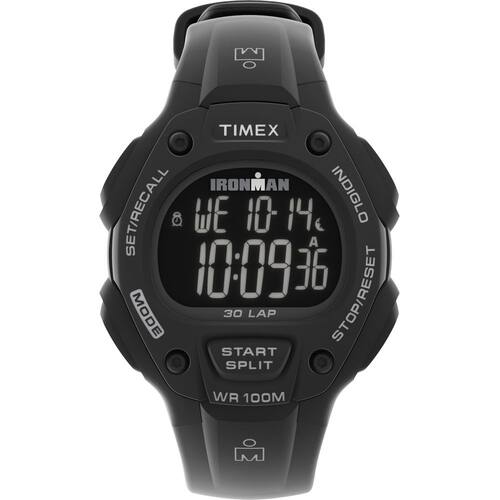 Relógio masculino Timex Ironman Classic 30 38 mm - caixa preta de 38 mm - pulseira preta de 8 polegadas - mostrador digital - lente acrílica - resistente à água até 100 metros