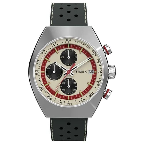 O Timex Legacy Tonneau Cronograph TW2W93400 foi projetado para ser visualmente impressionante, nosso Cronógrafo Timex Legacy Tonneau inspira-se nos estilos icônicos de relógios dos anos 70. Sua ampla caixa de aço inoxidável de 42mm em formato de barril abriga um mostrador elaborado e multicamadas com uma janela de data ao lado da marca das 3 horas. O efeito sunburst escovado na parte superior da caixa e os detalhes intrincados na caixa, coroa e botões entregam a este relógio ainda mais sofisticação, enquanto os ponteiros vermelhos brilhantes e a pulseira preta de borracha sintética conferem-lhe um toque mais esportivo.