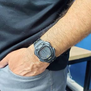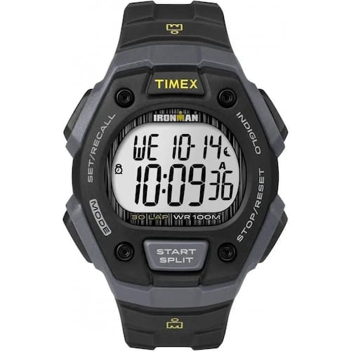 Seu design moderno une preto e cinza com detalhes em amarelo, reforçando o estilo esportivo da tradicional linha Ironman. O relógio oferece cronômetro com 100 horas e memória para 30 voltas, temporizador regressivo, alarme diário, iluminação Indiglo e resistência à água de até 100 metros, sendo uma excelente opção também para natação e uso outdoor.