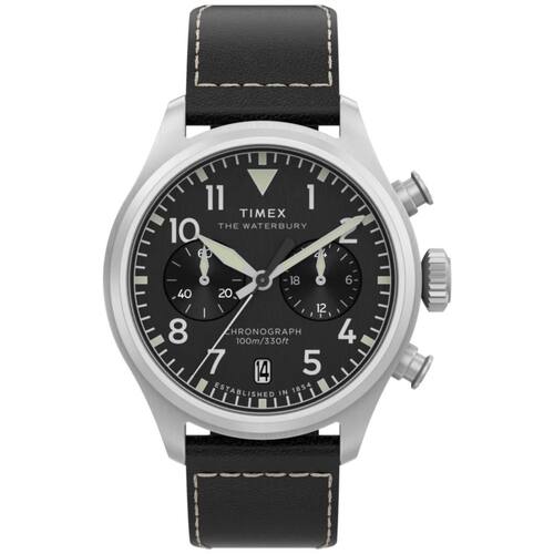 Relógio Timex Waterbury Ace Cronograph TW2Y19000 O Timex Waterbury Ace Cronograph TW2Y19000 é um clássico Americano, o Waterbury Ace é uma releitura sofisticada do relógio de piloto tradicional, apresentando uma nova caixa de 41 mm em aço inoxidável reciclado escovado, confiante e refinado. Seu mostrador preto com padrão sunray, limpo e de alto contraste, garante verificações rápidas de tempo com algarismos arábicos, ponteiro dos segundos elegante e minimalista, dispensa o característico W da Waterbury, permitindo que a estética militar do relógio brilhe. Outros detalhes incluem uma janela de data às 6 horas, ponteiros luminosos e uma pulseira de couro natural preto construído de forma sustentável com costuras contrastantes, de origem Leather Working Group LWG e equipada com barras de mola de liberação rápida para trocas fáceis de pulseira sem a necessidade de ferramentas. Especificações Técnicas Mecanismo: Quartzo ógico bateria Gênero: Masculino Visor: Preto Vidro: Cristal Mineral Funções: calendário, cronógrafo, ponteiros e marcadores das horas fosforescentes. Prova d'água: 100m Características: com caixa em aço inoxidável, pulseira em couro . Diâmetro da caixa: 41 mm Largura da Pulseira: 20 mm : 1 ano pelo fabricante Timex Marca: Não Informado Ean: 7909669218449