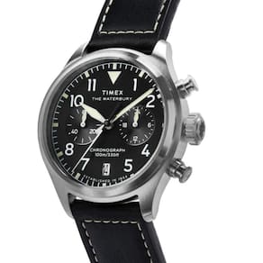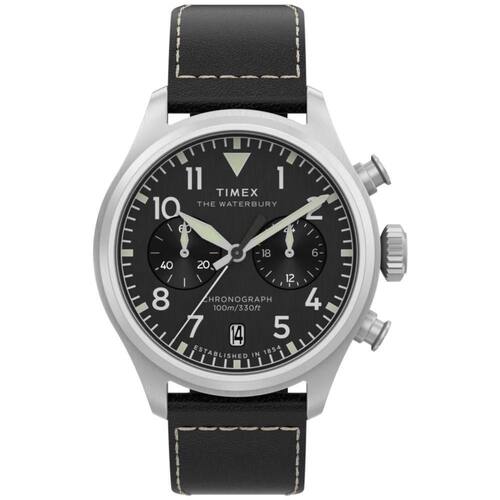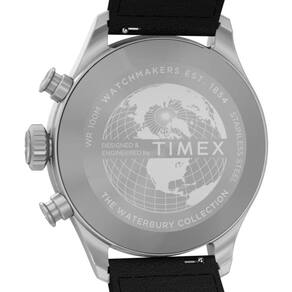 O Timex Waterbury Ace Cronograph TW2Y19000 é um clássico Americano, o Waterbury Ace é uma releitura sofisticada do relógio de piloto tradicional, apresentando uma nova caixa de 41 mm em aço inoxidável reciclado escovado, confiante e refinado. Seu mostrador preto com padrão sunray, limpo e de alto contraste, garante verificações rápidas de tempo com algarismos arábicos, ponteiro dos segundos elegante e minimalista, dispensa o característico W da Waterbury, permitindo que a estética militar do relógio brilhe. Outros detalhes incluem uma janela de data às 6 horas, ponteiros luminosos e uma pulseira de couro natural preto construído de forma sustentável com costuras contrastantes, de origem Leather Working Group (LWG) e equipada com barras de mola de liberação rápida para fáceis de pulseira sem a necessidade de ferramentas.