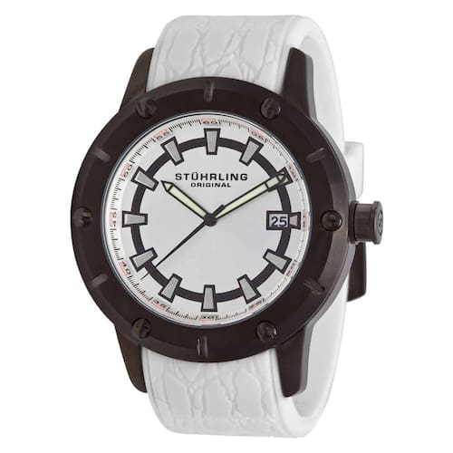 Este relógio possui um diâmetro de 49 mm e é resistente à água até 50 metros (165 pés). O mostrador apresenta um acabamento escovado com parafusos de fixação, proporcionando uma aparência elegante. A pulseira é feita de borracha de silicone de alta qualidade, com largura de 24 mm, oferecendo conforto e durabilidade ao usuário.