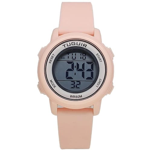 Características: com caixa em Policarbonato Rosa e pulseira em Silicone Rosa