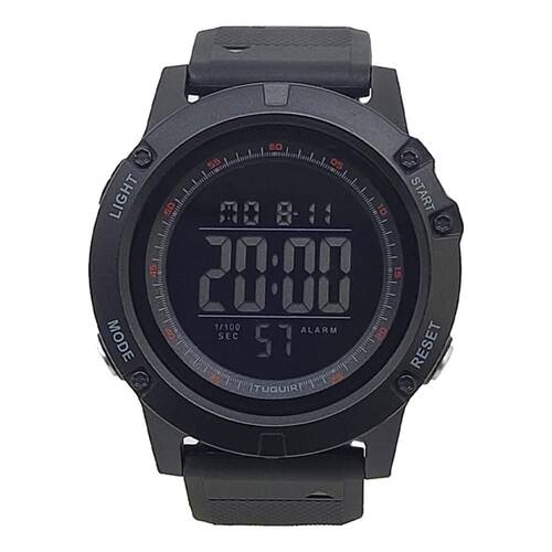 Características: com caixa em Policarbonato preto e pulseira em Poliuretano Preto