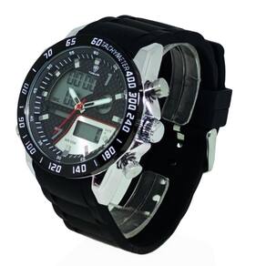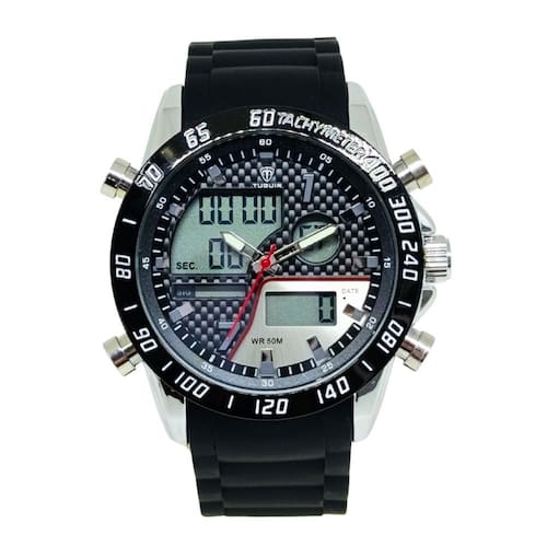Características: com caixa em Metal e pulseira em silicone Preta