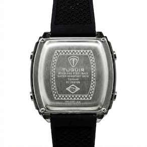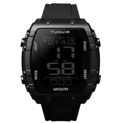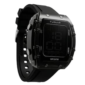 Características: com caixa em Policarbonato preto translúcido e pulseira em Silicone Preto