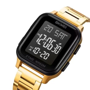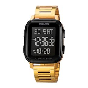 Relógio Unissex Skmei Digital 1859 Dourado e Preto Relógio Unissex Skmei Digital 1859 Dourado e Preto Marca: Skmei Categoria: Digital Analógico: Não Digital: Sim 1 Horário Calendário: Sim Despertador: Sim Mostra o Dia da Semana: Sim Mostra o Dia do Mês: Sim Cronômetro: Sim Contador Regressivo: Sim Luz: Sim Cor da Iluminação: Verde Resistente à Água: 5 ATM Pode ser Utilizado para nadar no raso, por pouco tempo submerso - Respingos: Sim - Chuva: Sim - Lavar Carro: Sim - Lavar Louça: Sim - Natação: Sim - Mergulho: Não Característica do Vidro: Cristal Mineral Tipo de Fecho: Dobrável com Botão Cor da Caixa: Dourado Material da Caixa: Plástico Formato da Caixa: Quadrado Comprimento da Caixa: 42,00 mm Largura da Caixa: 37,00 mm Espessura da Caixa: 12,00 mm Cor da Pulseira: Dourado Material da Pulseira: Aço Largura da Pulseira: 20,00 mm Comprimento Máximo da Pulseira: 260,00 mm Alimentação: Bateria Interna Peso Líquido: 0,080 Kg Modelo: 1859 Cor Predominante: Dourado Cor Diferencial: Preto : 12 Meses Conteúdo da Embalagem: 01 Relógio 01 Embalagem 01 Termo de Ean: 7891368320298