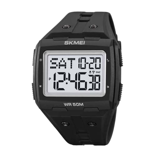 Relógio Unissex Skmei Digital 2186 Preto Relógio Unissex Skmei Digital 2186 Preto Marca: Skmei Categoria: Digital Analógico: Não Digital: Sim 2 Horário Calendário: Sim Despertador: Sim Mostra o Dia da Semana: Sim Mostra o Dia do Mês: Sim Cronômetro: Sim Contador Regressivo: Sim Luz: Sim Cor da Iluminação: Verde Resistente à Água: 5 ATM Pode ser Utilizado para nadar no raso, por pouco tempo submerso - Respingos: Sim - Chuva: Sim - Lavar Carro: Sim - Lavar Louça: Sim - Natação: Sim - Mergulho: Não Característica do Vidro: Acrílico Tipo de Fecho: Fivela Cor da Caixa: Preto Material da Caixa: Plástico Formato da Caixa: Quadrado Comprimento da Caixa: 26,00 mm Largura da Caixa: 44,50 mm Espessura da Caixa: 13,50 mm Cor da Pulseira: Preto Material da Pulseira: Borracha Largura da Pulseira: 21,50 mm Comprimento Máximo da Pulseira: 260,00 mm Alimentação: Bateria Interna Peso Líquido: 0,050 Kg Modelo: 2186 Cor Predominante: Preto : 12 Meses Conteúdo da Embalagem: 01 Relógio 01 Embalagem 01 Termo de Ean: 7891368320427