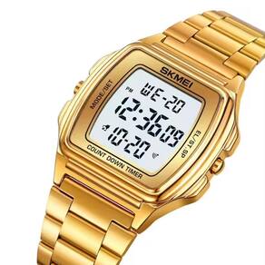 Relógio Unissex Skmei Digital 2239 Dourado Relógio Unissex Skmei Digital 2239 Dourado Marca: Skmei Categoria: Digital Analógico: Não Digital: Sim 1 Horário Calendário: Sim Despertador: Sim Mostra o Dia da Semana: Sim Mostra o Dia do Mês: Sim Contador Regressivo: Sim Luz: Sim Cor da Iluminação: Verde Resistente à Água: 3 ATM Resiste a imersões breves - Respingos: Sim - Chuva: Sim - Lavar Carro: Sim - Lavar Louça: Sim - Natação: Não - Mergulho: Não Característica do Vidro: Cristal Mineral Tipo de Fecho: Gancho Cor da Caixa: Dourado Material da Caixa: Metal Banho IP Formato da Caixa: Quadrado Comprimento da Caixa: 34,00 mm Largura da Caixa: 34,50 mm Espessura da Caixa: 9,00 mm Cor da Pulseira: Dourado Material da Pulseira: Aço Largura da Pulseira: 16,00 mm Comprimento Máximo da Pulseira: 230,00 mm Alimentação: Bateria Interna Peso Líquido: 0,070 Kg Modelo: 2239 Cor Predominante: Dourado : 12 Meses Conteúdo da Embalagem: 01 Relógio 01 Embalagem 01 Termo de Ean: 7891368320618